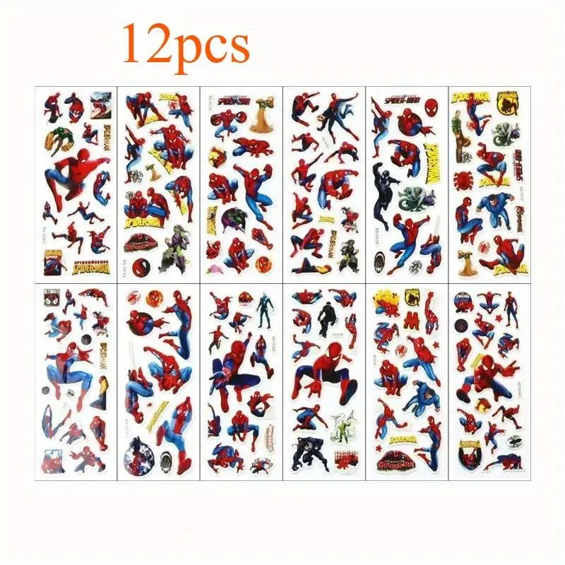 12 шт на одному аркуші, набір, наліпка водонепроникна вінілова (наклейка, стікер) в асортименті мультяшні персонажі, спайдермен, людина павук, spaderman, ціна за набір