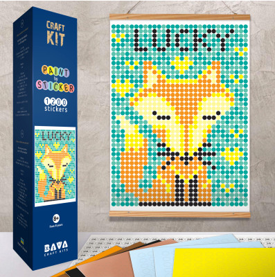 Аплікація - картина по номерам з наліпками (арт терапія) Лисичка, 33х48см, 1200 стікерів ( відео в описі )