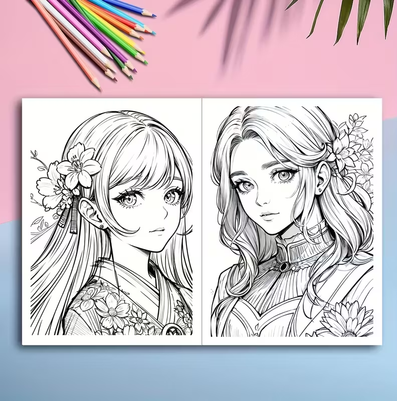 Книжка-розмальовка з лінійним малюнком, що включає аніме-мавки, для зняття стресу, з понад 20 креативними дизайнами.