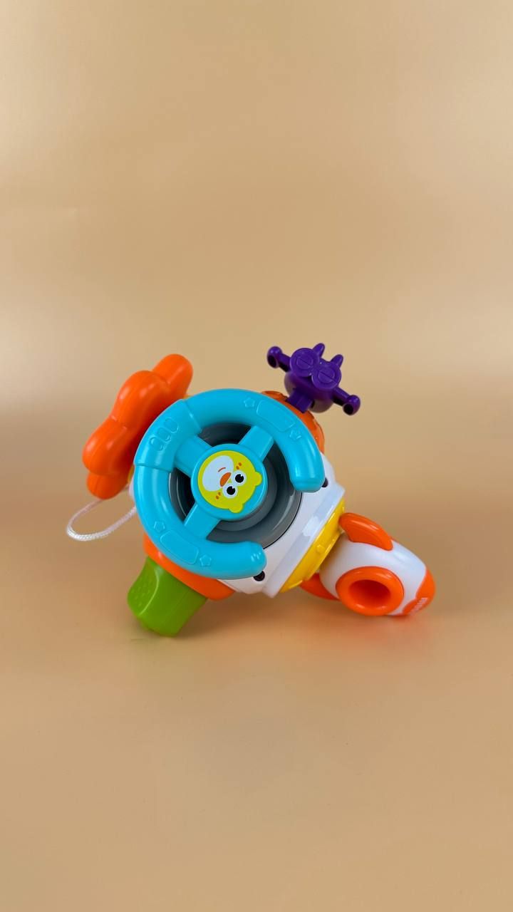 • Рухомі елементи: кермо, сонечко, які обертаються, важіль у вигляді літака утримують увагу дитини.