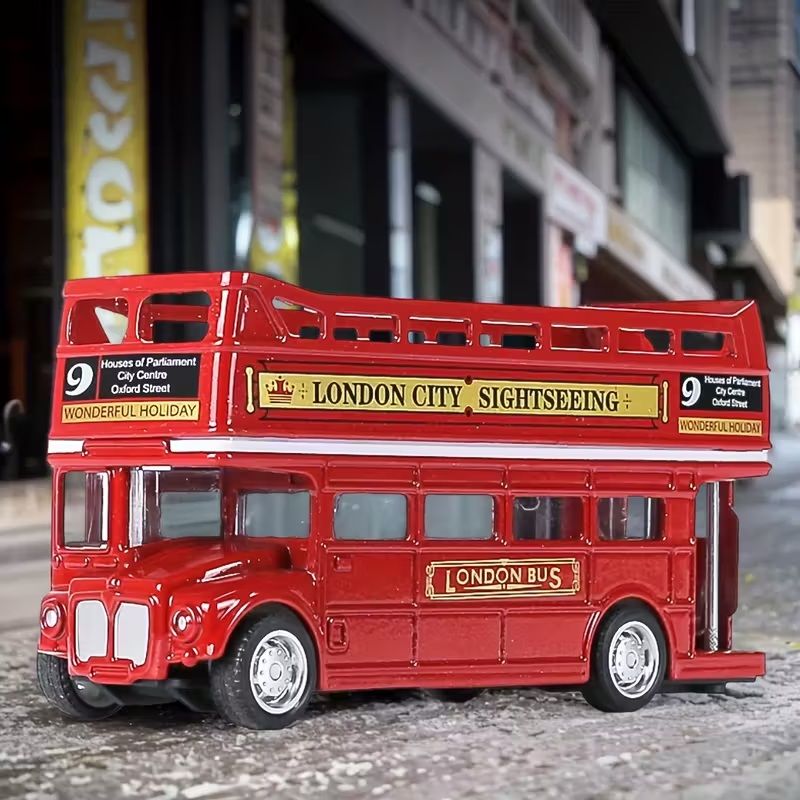 Дитяча іграшка двоповерховий лондонський автобус 3738 червоний, відкритий верх, метало - пластиковий корпус.