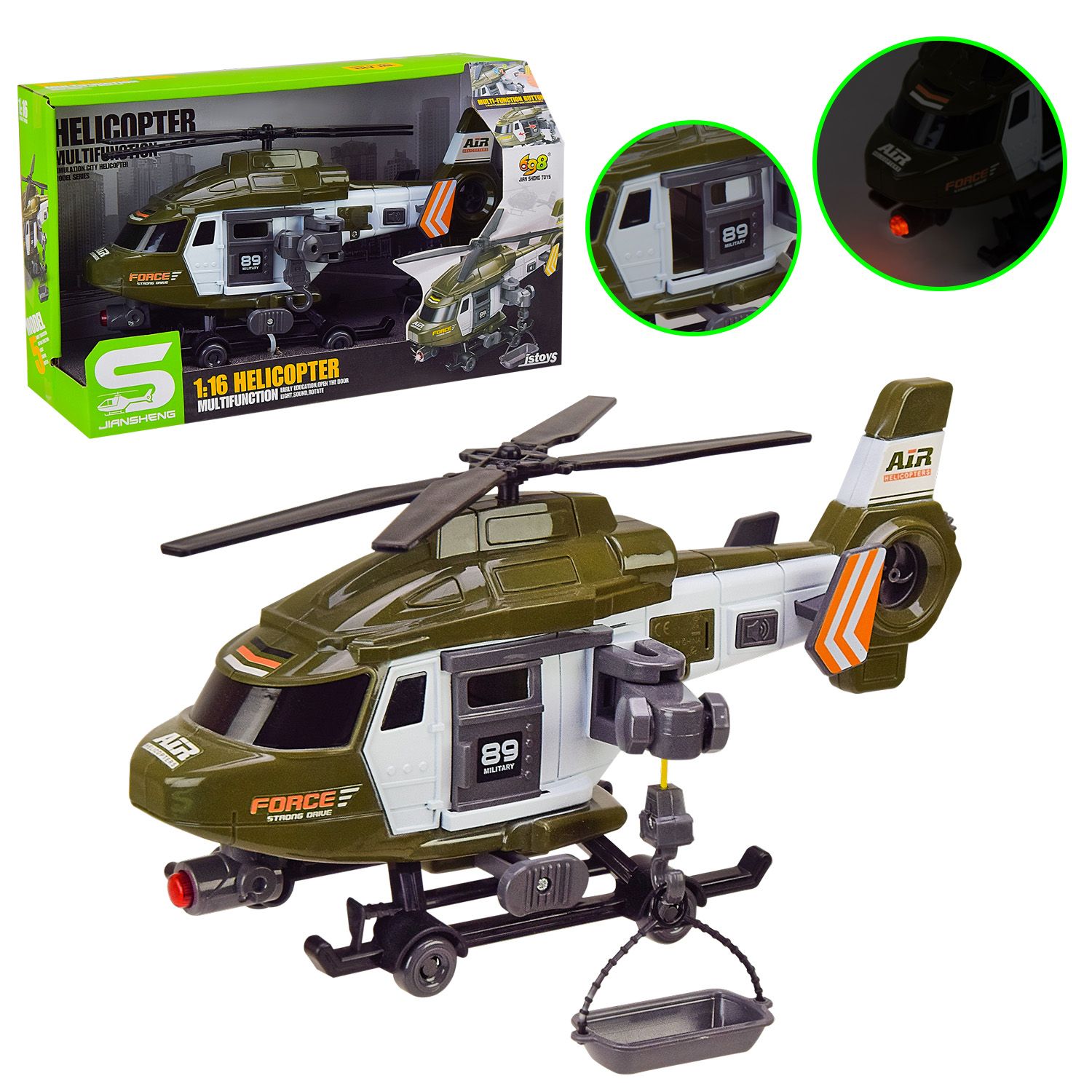Дитяча іграшка гелікоптер вертоліт JS128C світловий та звуковий 1:16 коробка