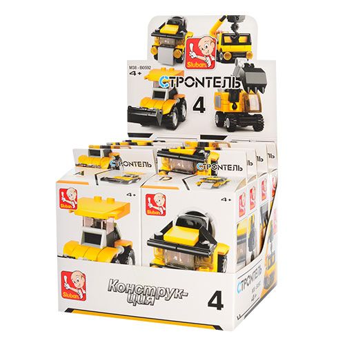 Дитяча іграшка конструктор будівельна техніка SLUBAN M38-B0592 Builder 4 види від 36 деталей в кор.16-16,5-14,5см