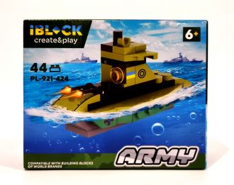 Дитяча іграшка конструктор підводний човен IBLOCK арт. PL-921-424 (4) Армія, 44 деталі