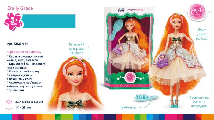 Дитяча іграшка лялька з довгим волоссям Emily Romantic шарнірна KH23/014