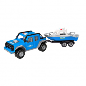 Поліцейський джип із серії “Титан” у комплекті з причепом та катером створений для активних і захопливих ігор маленьких захисників порядку.