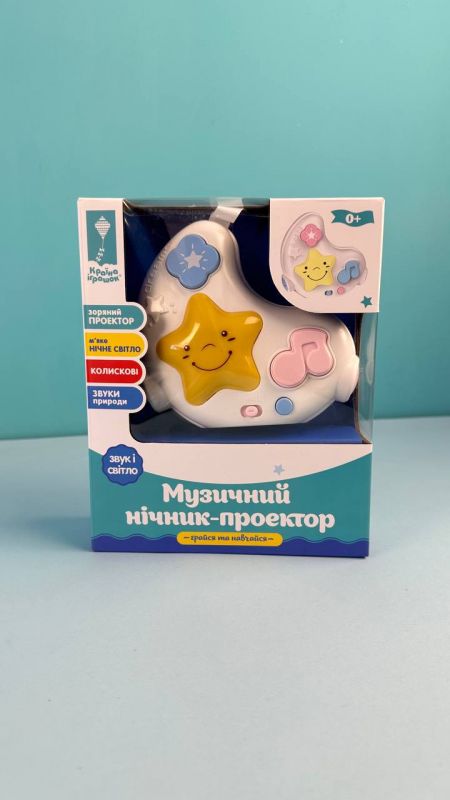 Дитяча іграшка музичний нічник PL-724-07 з пультом керування проектор зоряне небо короб. 17,5*6,5*21см