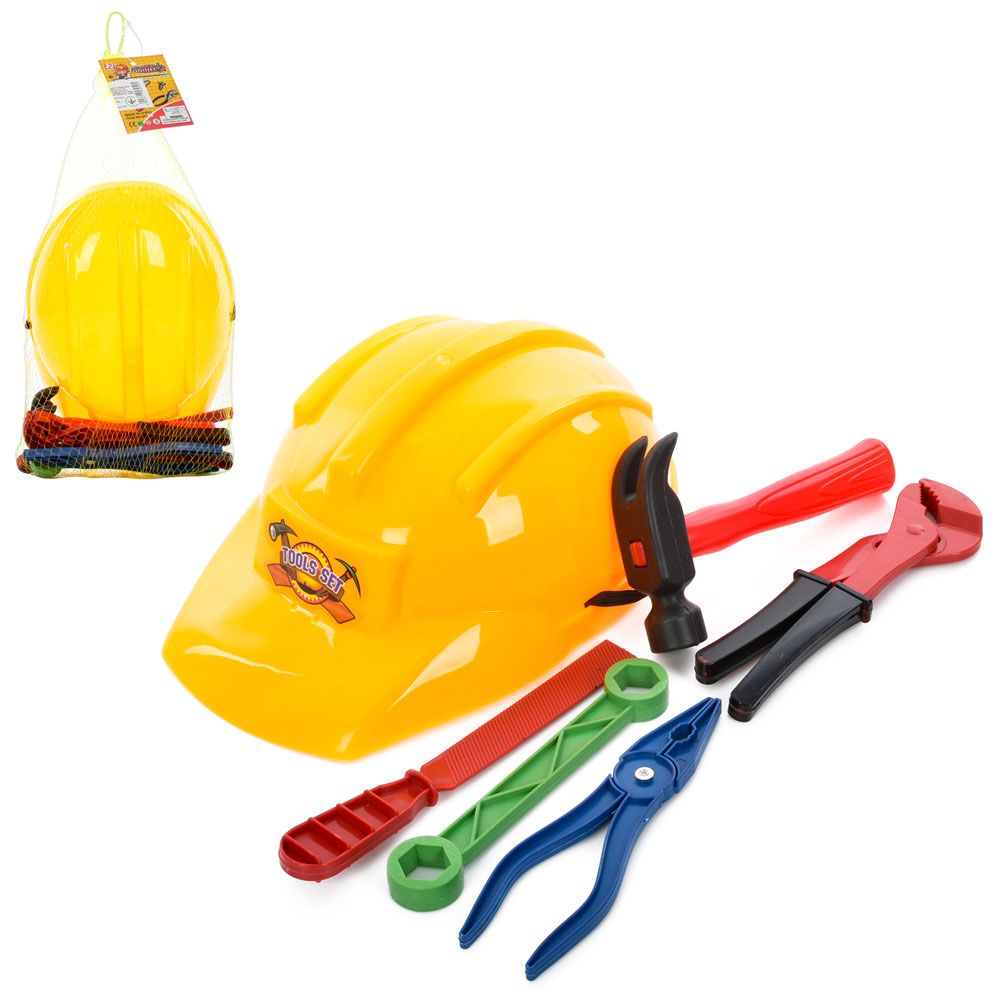 Дитяча іграшка набір інструментів 25169 6 предметів каска молоток плоскогубці сітка 25-16-8 см.