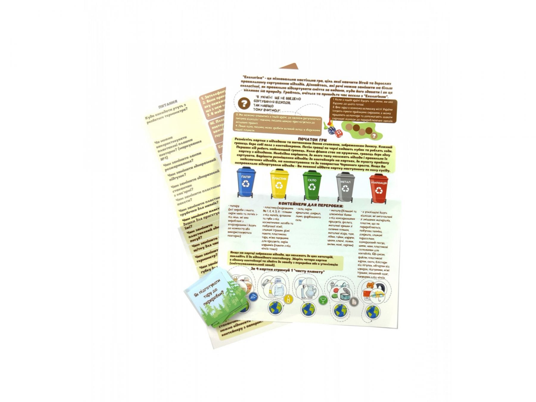 "Екологіка" - це пізнавальна настільна гра, ціль якої навчити дітей та дорослих правильному сортуванню відходів та усвідомленому споживанню.