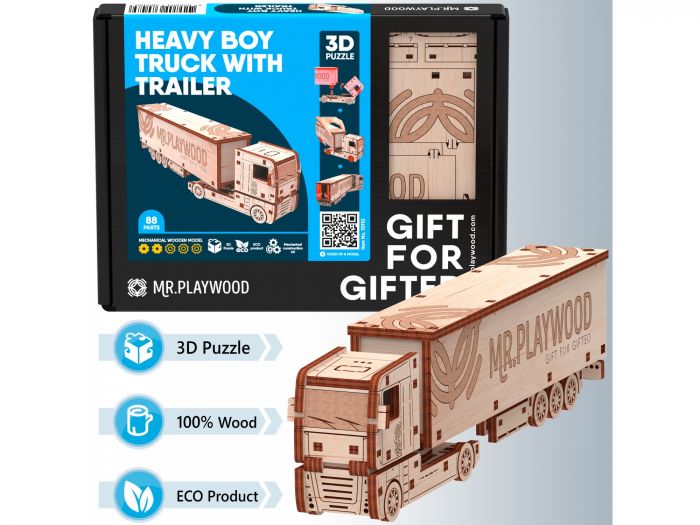 Дитяча іграшка тягач с причепом 10110 MR.PLAYWOOD механічна дерев'яна 3D-модель