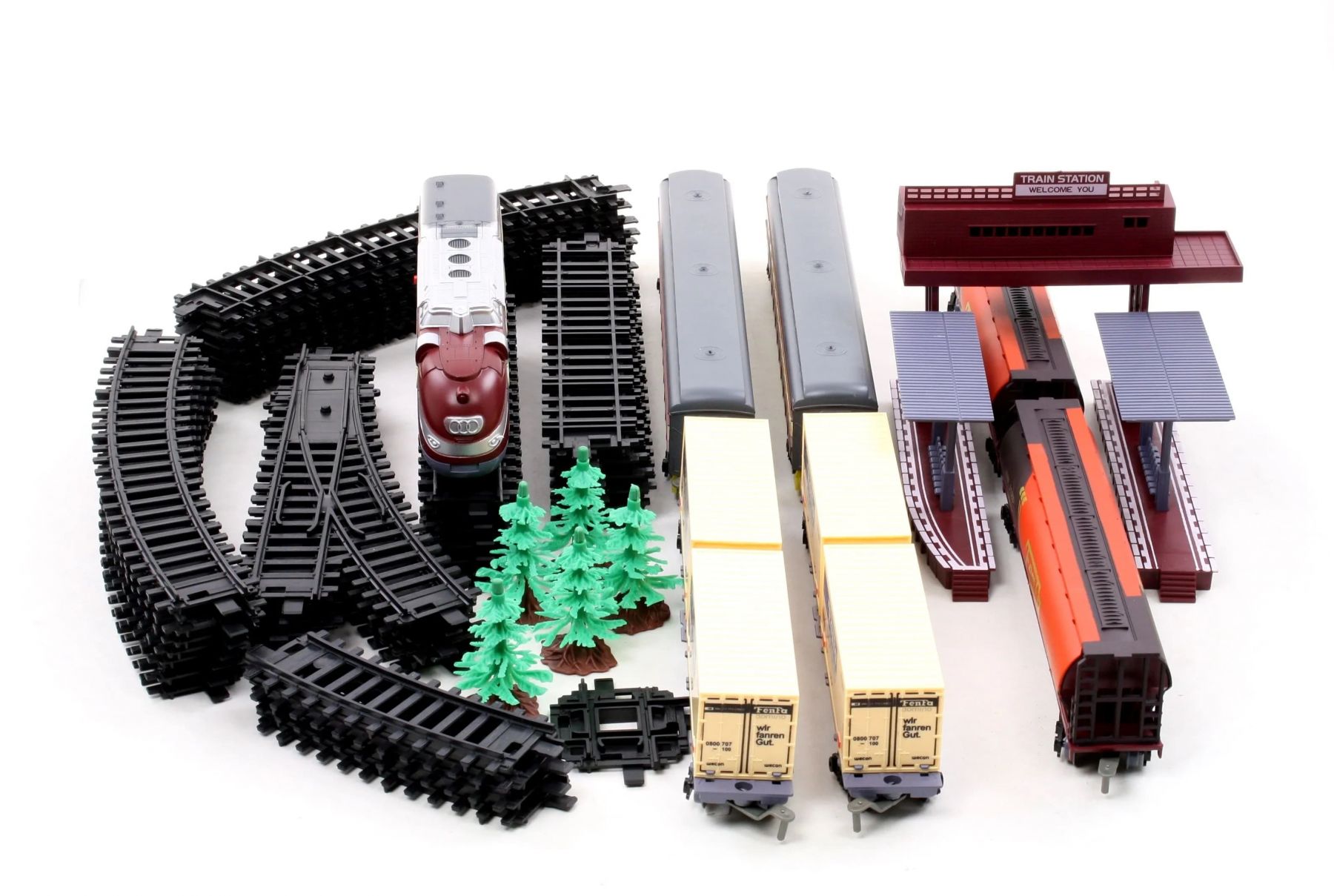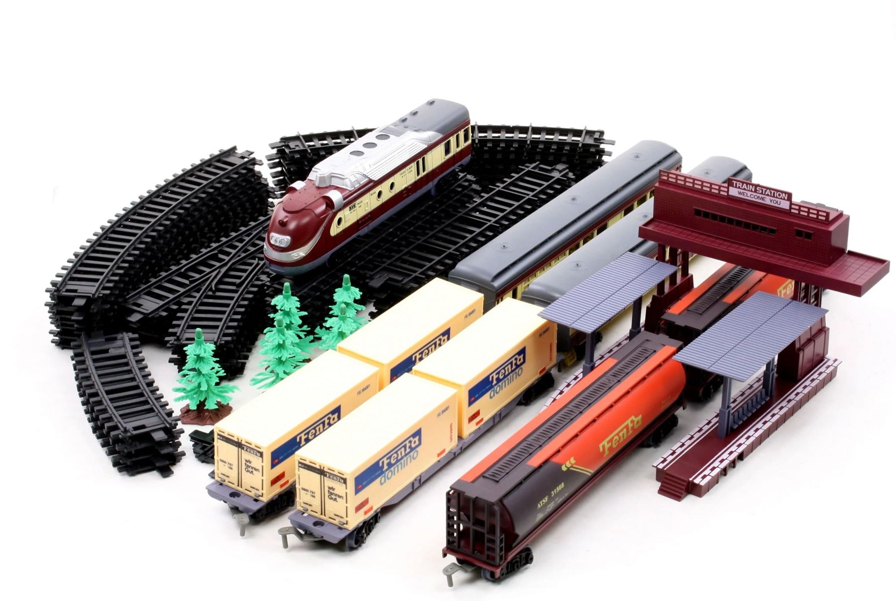 Переваги залізниць FENFA міцний пластик, надійні кріплення рейок та вагонів, вагони та локомотиви виконані красиво та детально. Економія живлення завдяки малій вазі та легкості ходу коліс.
