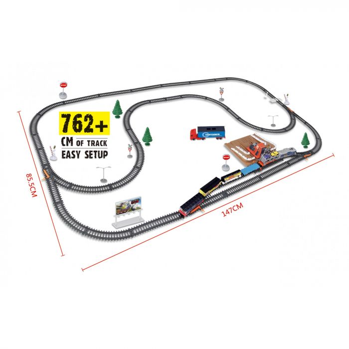 Загальна довжина залізничного полотна 762 см Ігрове поле займає площу: 147х 85.5 см.