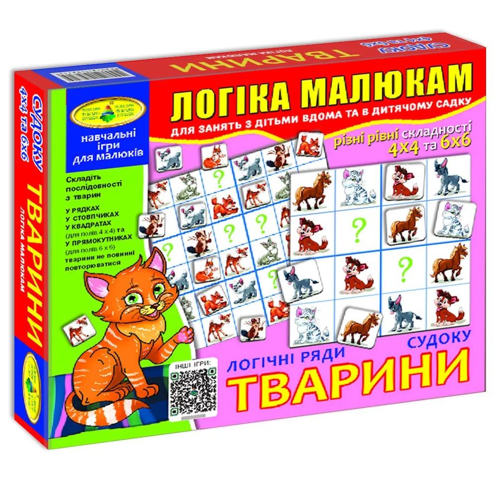 Дитяча настільна гра (вік 3+) інтелектуальна логічна головоломка Судоку, тварини (КФІ 2715)