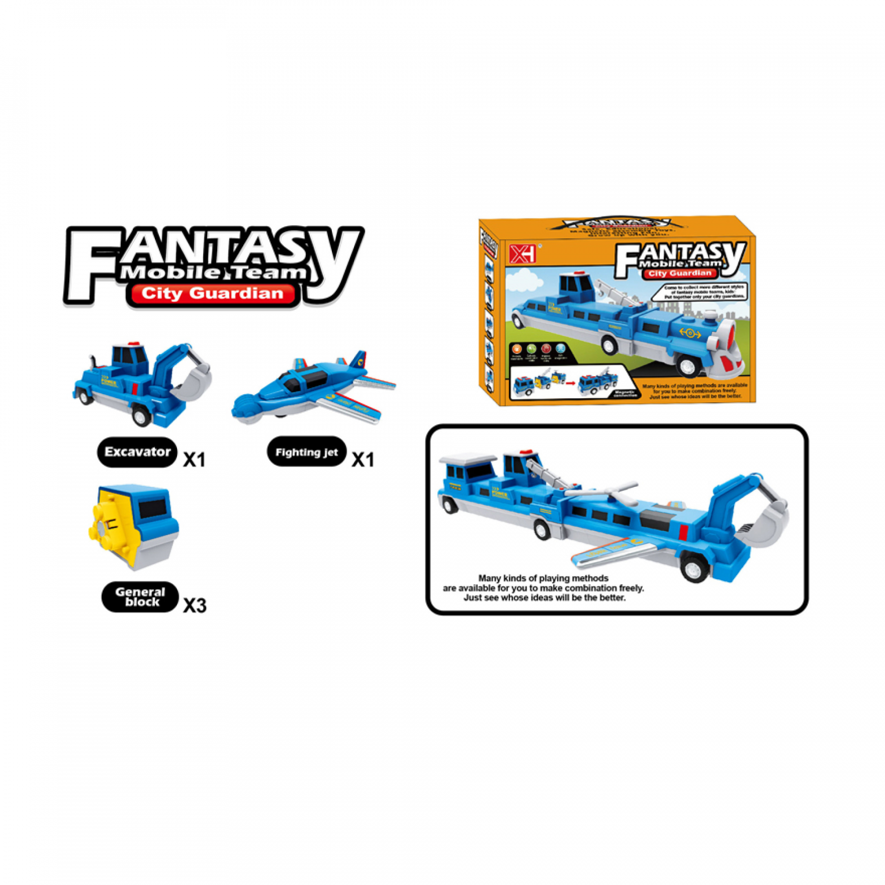 У наборі бойовий літак, ескаватор та додаткові блоки.