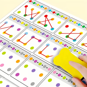 - Типи завдань: Набір включає вправи на з'єднання точок певного кольору або послідовне відстеження цифр.