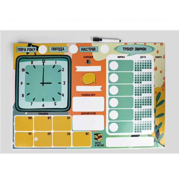 Ви зможете побудувати режим дня та спланувати тиждень цікаво та весело за допомогою яскравих багаторазових наліпок.