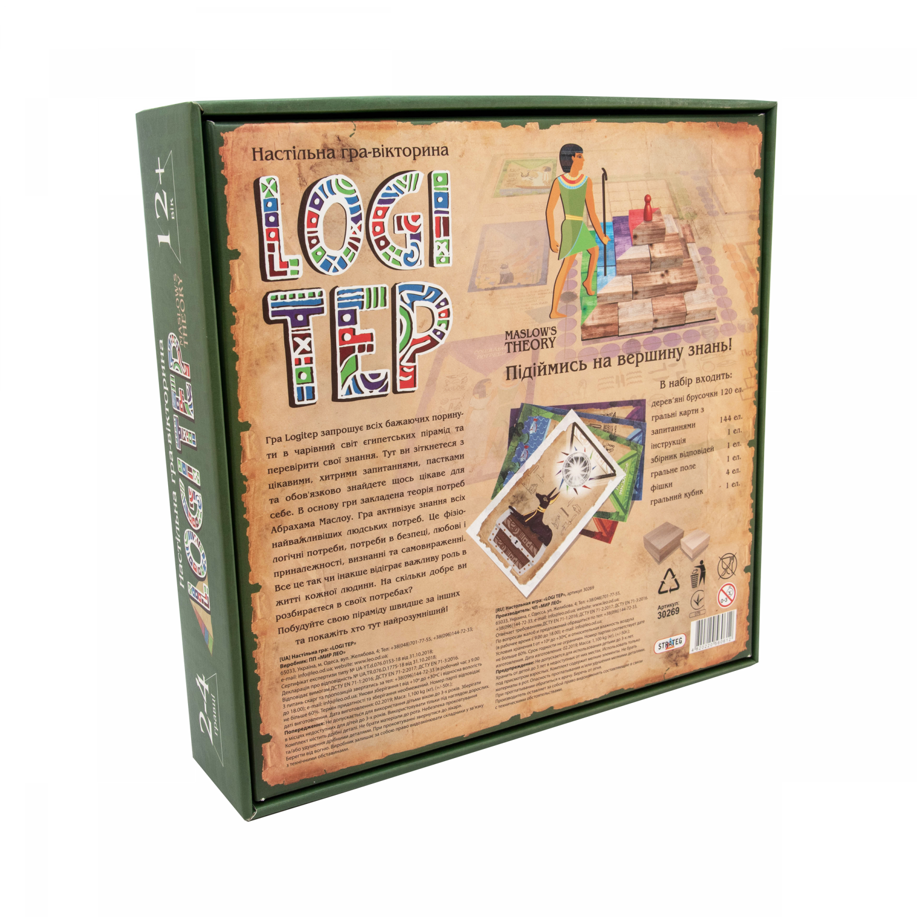 Інтелектуальна гра «Logi Тep» Strateg (30269) – заснована на знаменитій теорії Маслоу. У розважальній формі дасть нові знання про потреби людини з теорії піраміди Маслоу. Ви дізнаєтеся про взаємодію та значущість своїх потреб – від первинних до піднесених, від їжі та безпеки, до поваги та визнання.