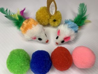 Іграшка для кота (кішки, кошеня) набір №1 (кролик 1шт, мишка 2 шт, кульки 4 шт)