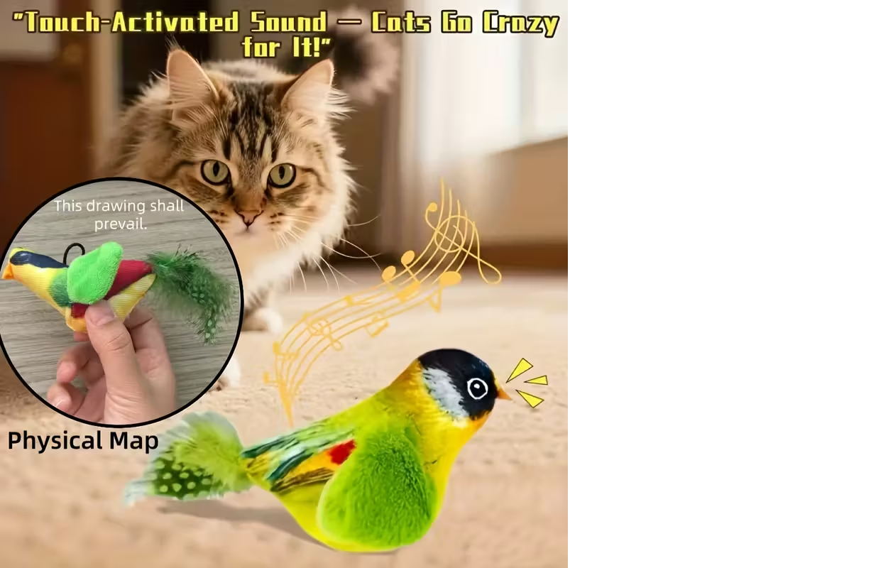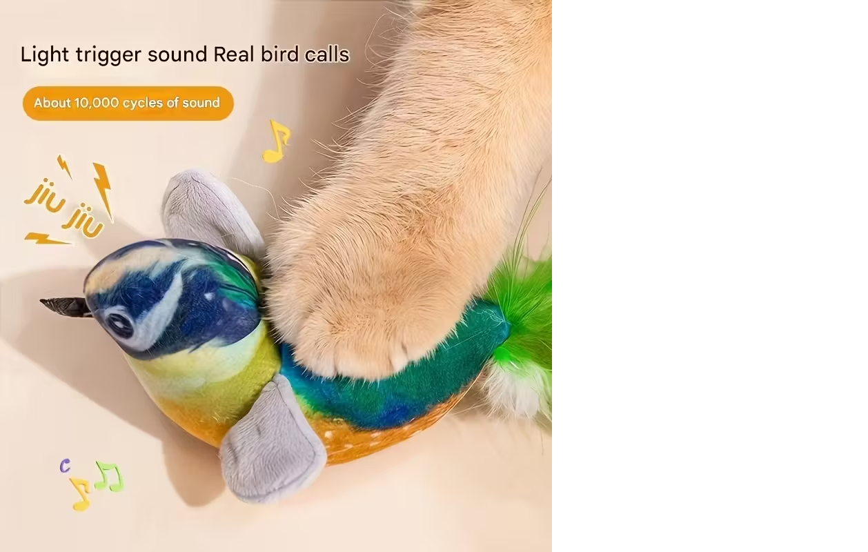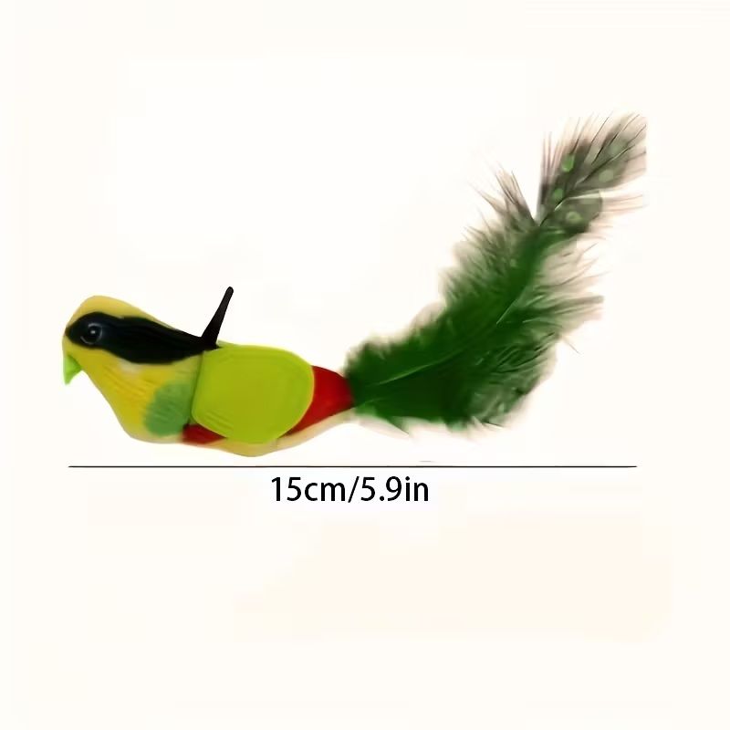 Інтерактивна плюшева іграшка-дражнилка для котів у вигляді пташки - реалістичний цвірінь, пухнаста пір'яна паличка, ручна робота, штучний політ, ідеально для самостійної гри та полювання, підходить для всіх порід котів, інтерактивна іграшка для котів