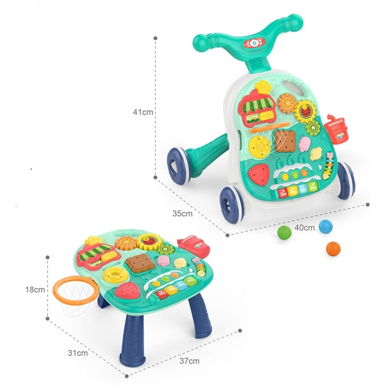 Дитяча іграшка для малюка ходунки каталка - столик інтерактивний 2в1 зі світлом та музикою HE0814 HUANGER