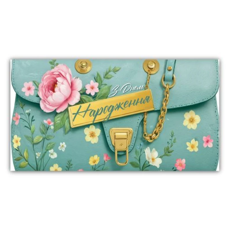 Конверт подарунковий для грошей жіночий "З днем народження" 00181
