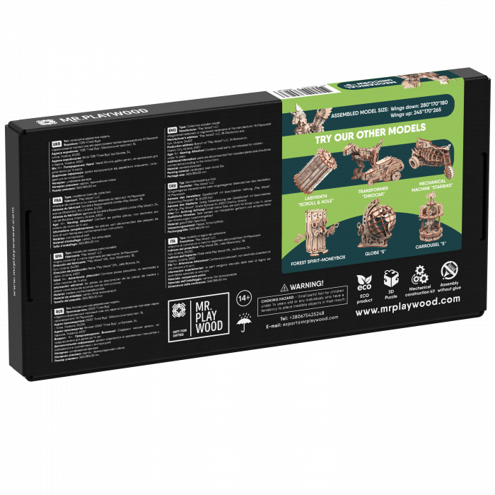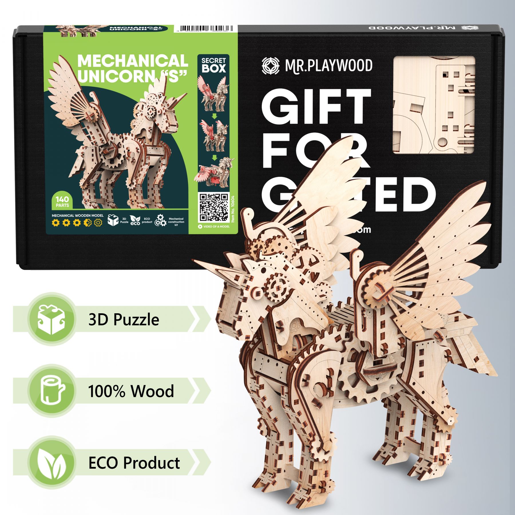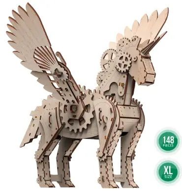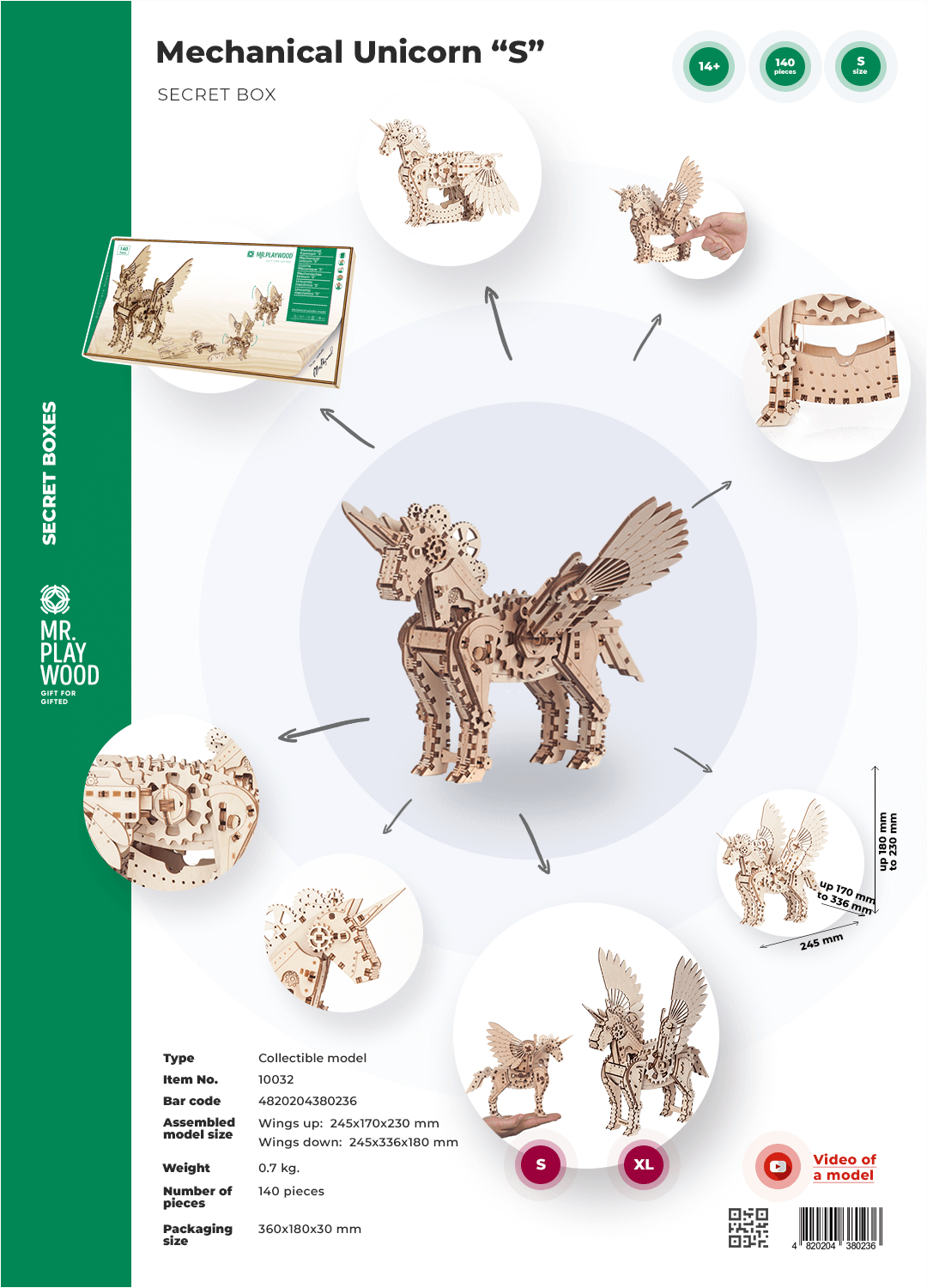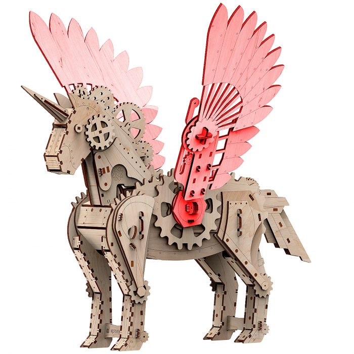 За допомогою набору Mr.Playwood Unicorn Small можна створити Механічного Єдинорога в стилі "стімпанк" з рухомими крилами.
