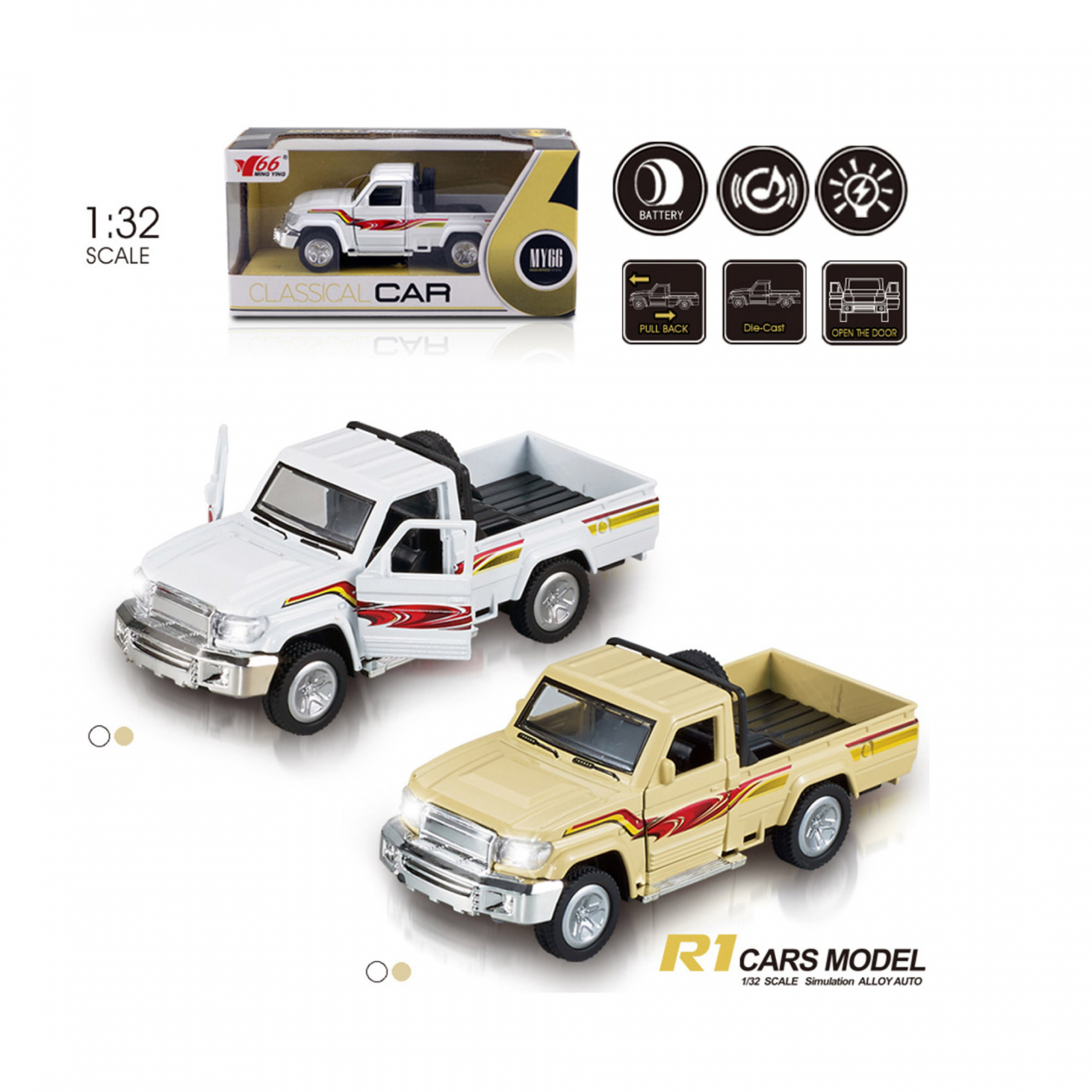 Металева інерційна машинка джип 1:32 ТМ MING YUAN ®, в кор.11.4X6.9X4.9 см