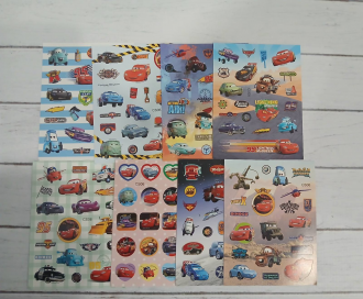 Набір 150 шт наліпок вінілових з зображенням машинок (3990) герої мультфільму тачки