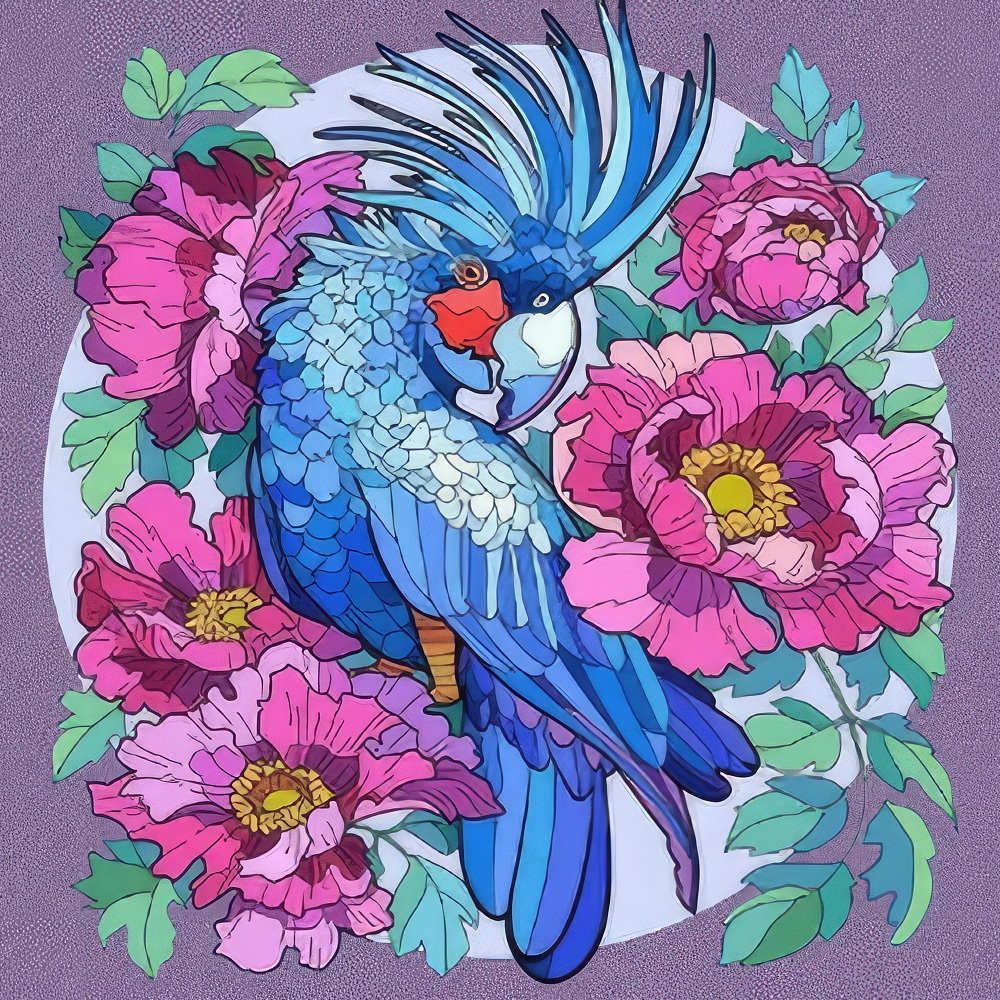 Живопис розпис картина за номерами-антистрес Strateg Папуга у квітах розміром 30х30 см (JCEE36805)