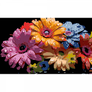 Живопис розпис картина за номерами Феєричні гербери Strateg на чорному фоні розміром 50х25 см (BH5025-10)