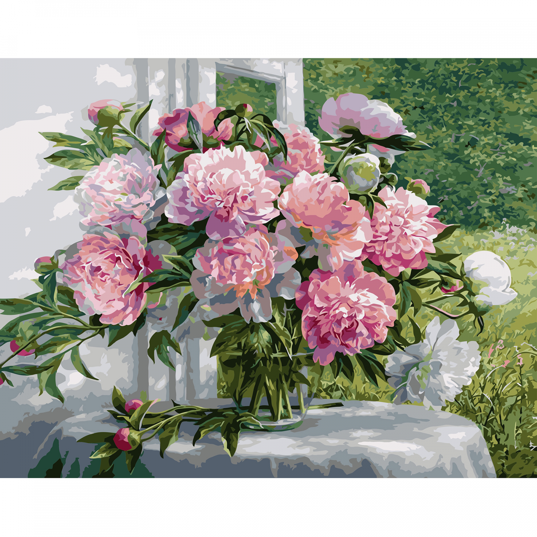 Живопис розпис картина за номерами VA-1509 "Букет рожевих піонів біля вікна", розміром 40х50 см
