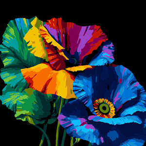Картина за номерами Strateg ПРЕМІУМ Веселка маків на чорному фоні розміром 40х40 см (AV4040-77)
