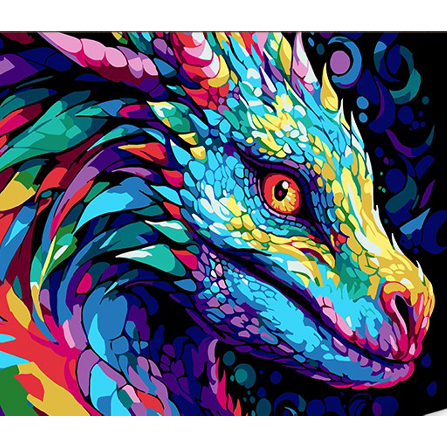 Картина за номерами Strateg ПРЕМІУМ Яскравий образ дракона на чорному фоні розміром 30х40 см (FH-11)