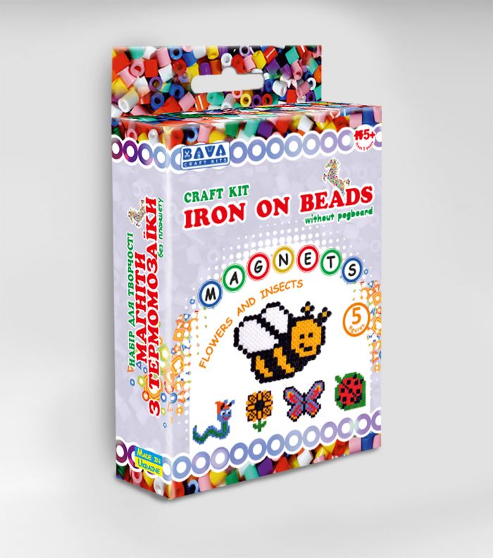 За допомогою нашого набору Ви зможете зробити 5 яскравих і барвистих магнітів з термомозаіки. Зберіть на планшеті фігурки за схемами, пропрасуйте праскою через термобумагу, приклейте магнітну стрічку і магніт готовий!