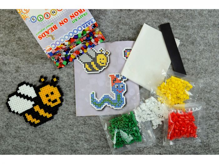 У наборі: кольорові намистини, термопапір, магнітна стрічка, інструкція. Для дітей від 5 років.
