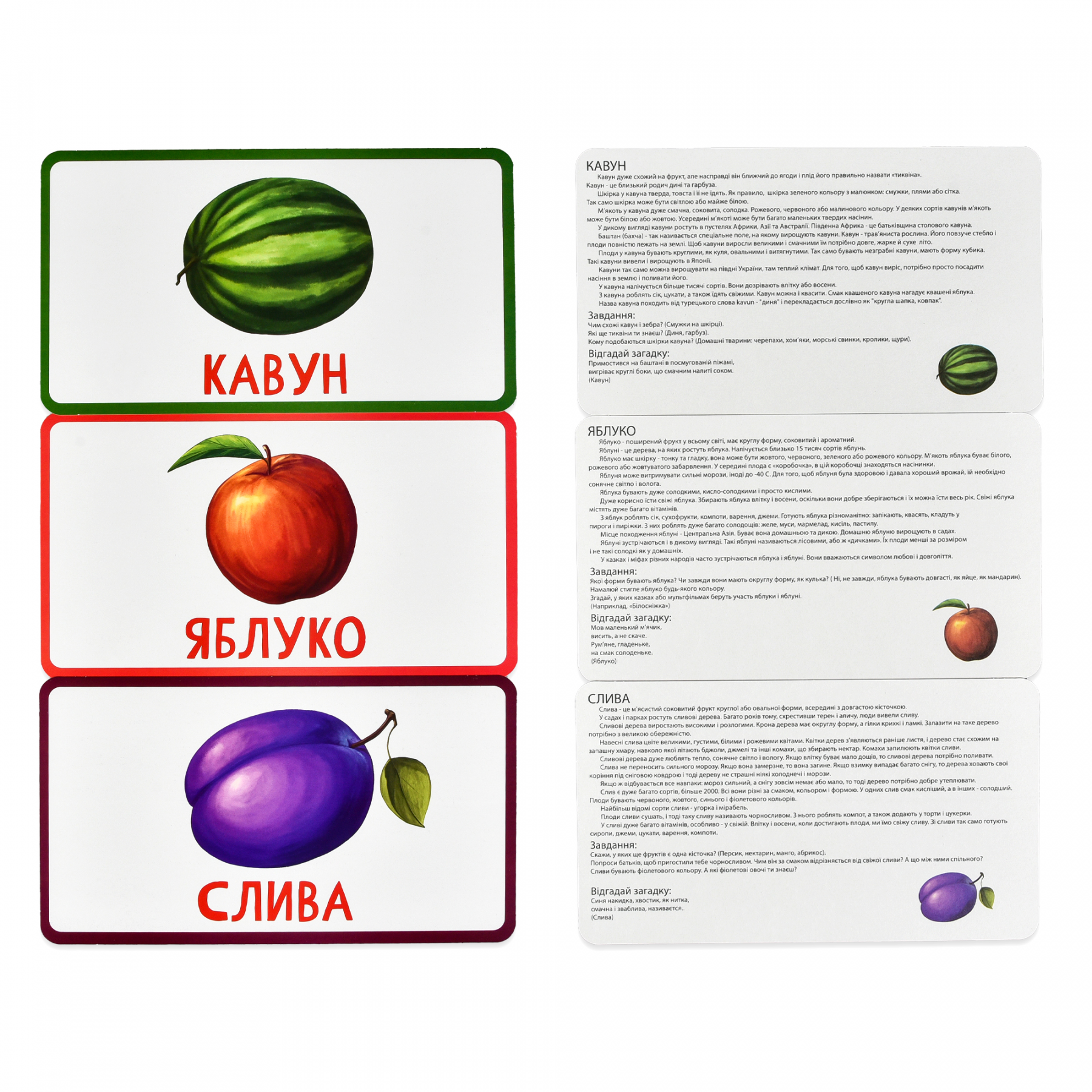 Навчальні картки «Вивчай світ. Фрукти» – яскравий інструмент для розвитку дитини. Вони допомагають легко вивчати назви фруктів, поєднувати слово із зображенням та пізнавати світ у грі. Картки розвивають пам’ять, мовлення й увагу, збагачують словниковий запас і роблять навчання цікавим. Підійдуть для занять удома, у садочку чи під час індивідуальних уроків.