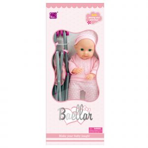 Пупс Baellar. Набір включає ляльку пупса в милому рожевому костюмчику в білий горошок та іграшкову коляску для прогулянок.