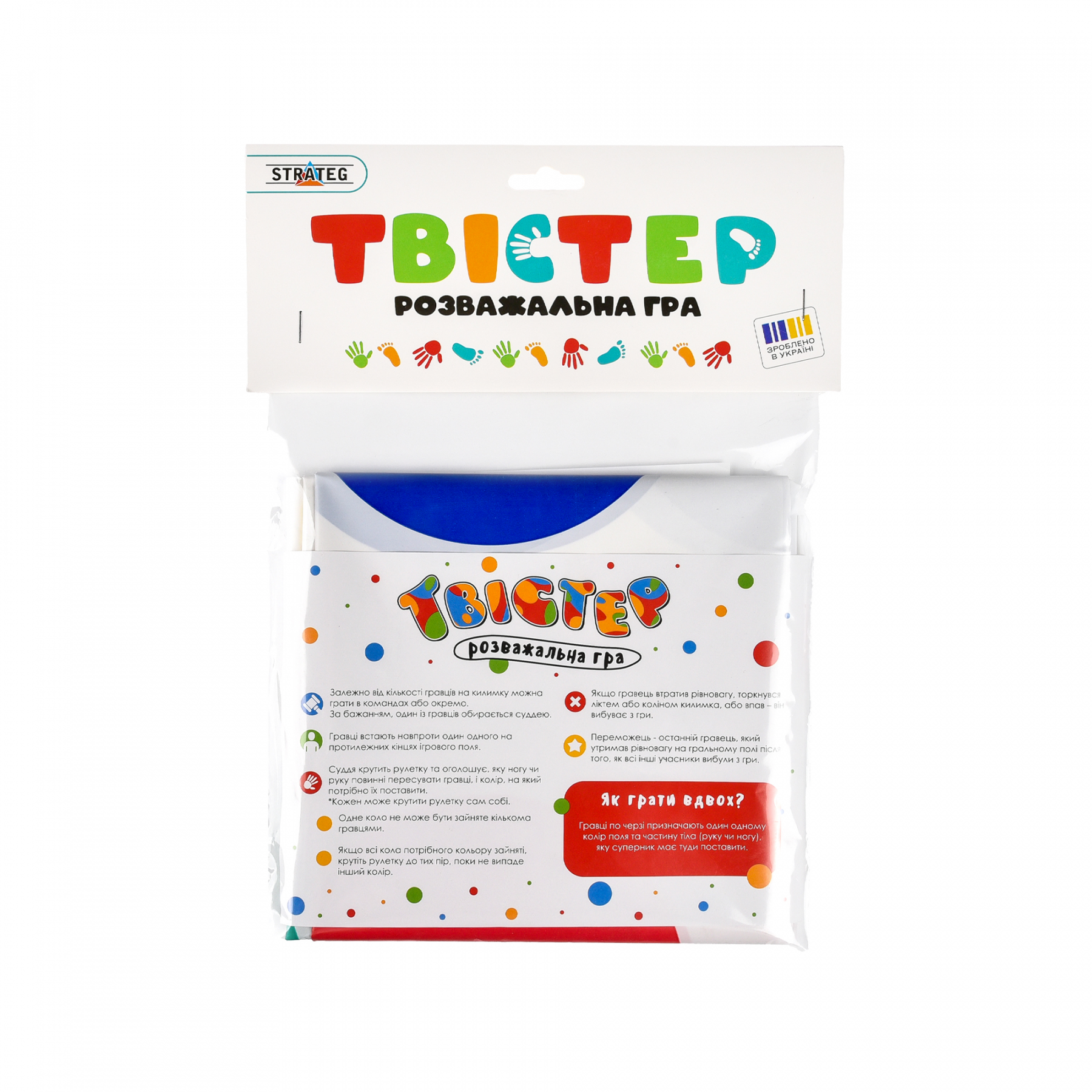 «Твістер» — рухлива гра для компанії, яка дарує сміх і веселощі. Весела гра змусить вас крутитися, тягнутися і сміятися! Гравці мають ставити руки й ноги на кольорові кола, не падаючи й не заплутуючись. Ідеально для активного дозвілля вдома або на природі, для дітей та дорослих. Для дітей від 5 років і дорослих.