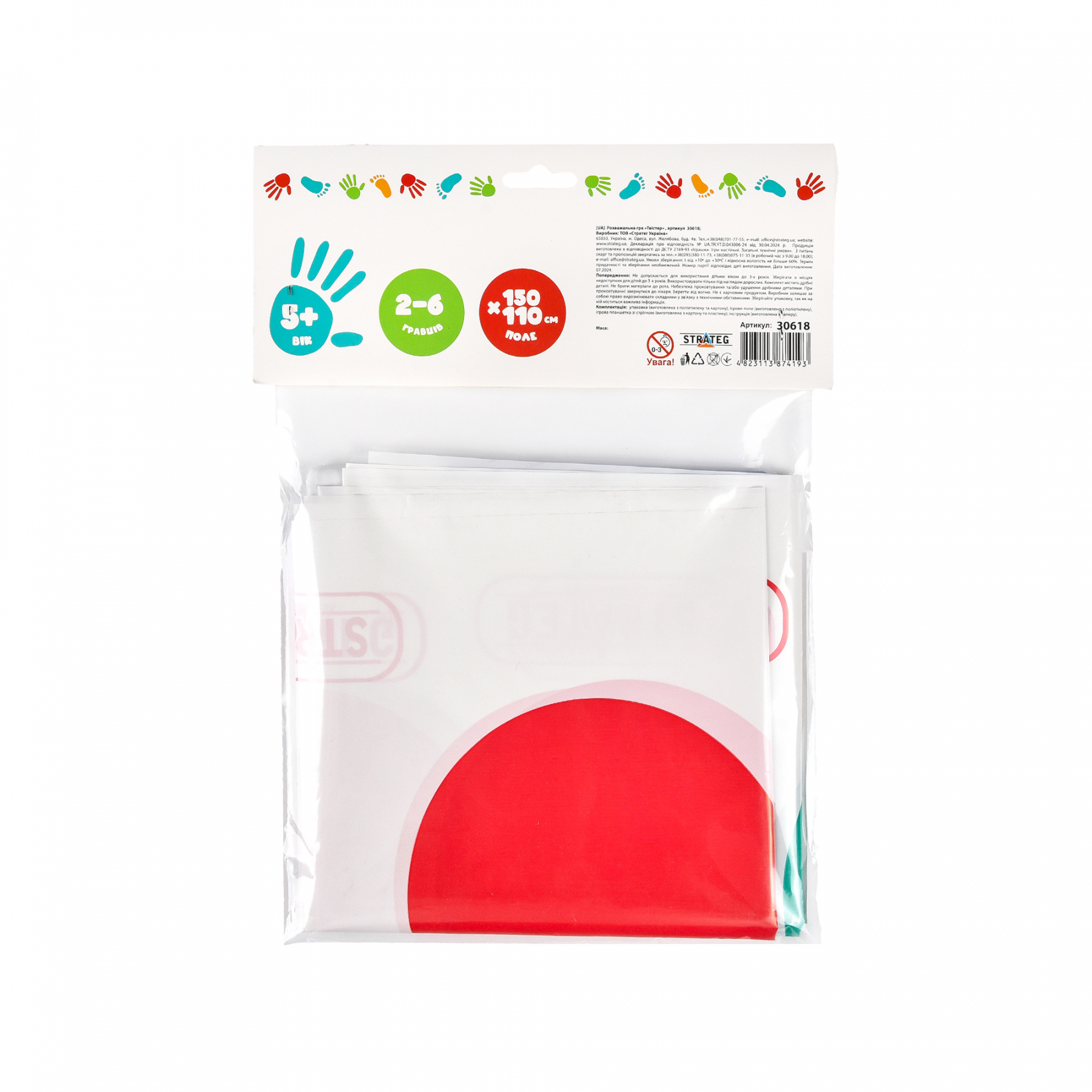 ♦ Комплектація: упаковка (виготовлена з поліетилену та картону), ігрове поле (виготовлено з поліетилену), ігрова планшетка зі стрілкою розміром 14х14 см (виготовлена з картону та пластику), інструкція (виготовлена з паперу)