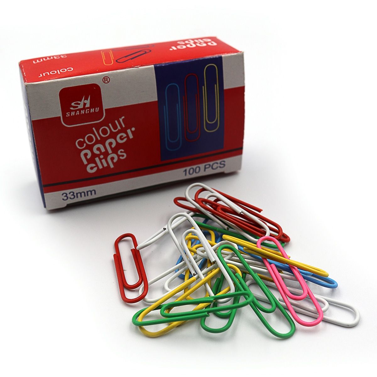 Скріпки канцелярські 2218-33 кольорові 33мм 100шт