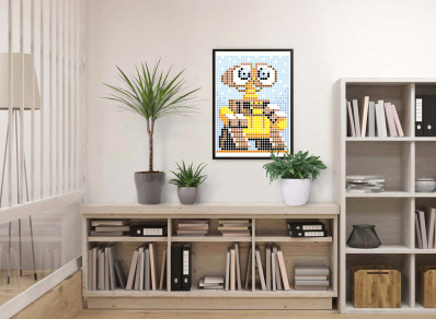 Аплікація - картина по номерам з наліпками (арт терапія) Робот жовтий, 33х48см, 1200 стікерів ( відео в описі )