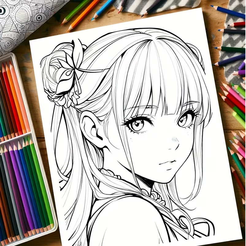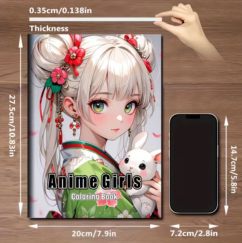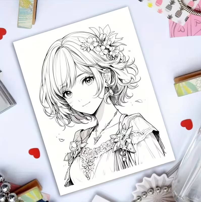 Книжка-розмальовка з лінійним малюнком, що включає аніме-мавки, для зняття стресу, з понад 20 креативними дизайнами.
