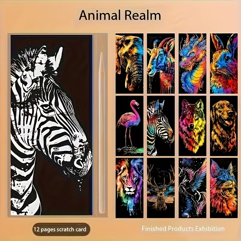 Арт терапія скретч малюнки набір 12 шт (4563) scratch notes скретчбук, антистрес царапка
