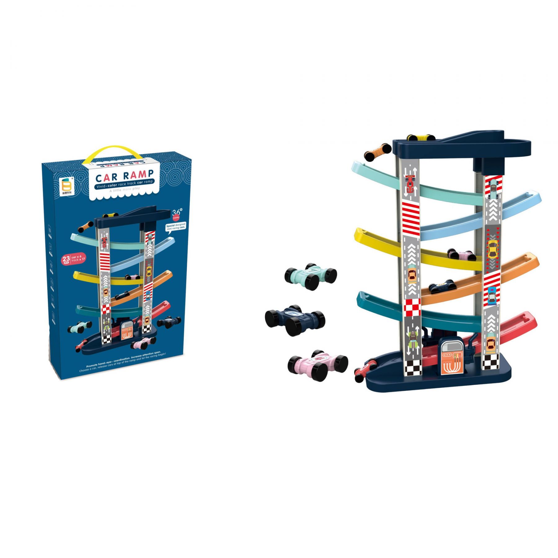 Car Ramp - це сучасна модель спускового треку для діток від 36 місяців. Деталі виконані з високоякісного пластику із закругленими кутами, що зробить гру захоплюючою та безпечною.