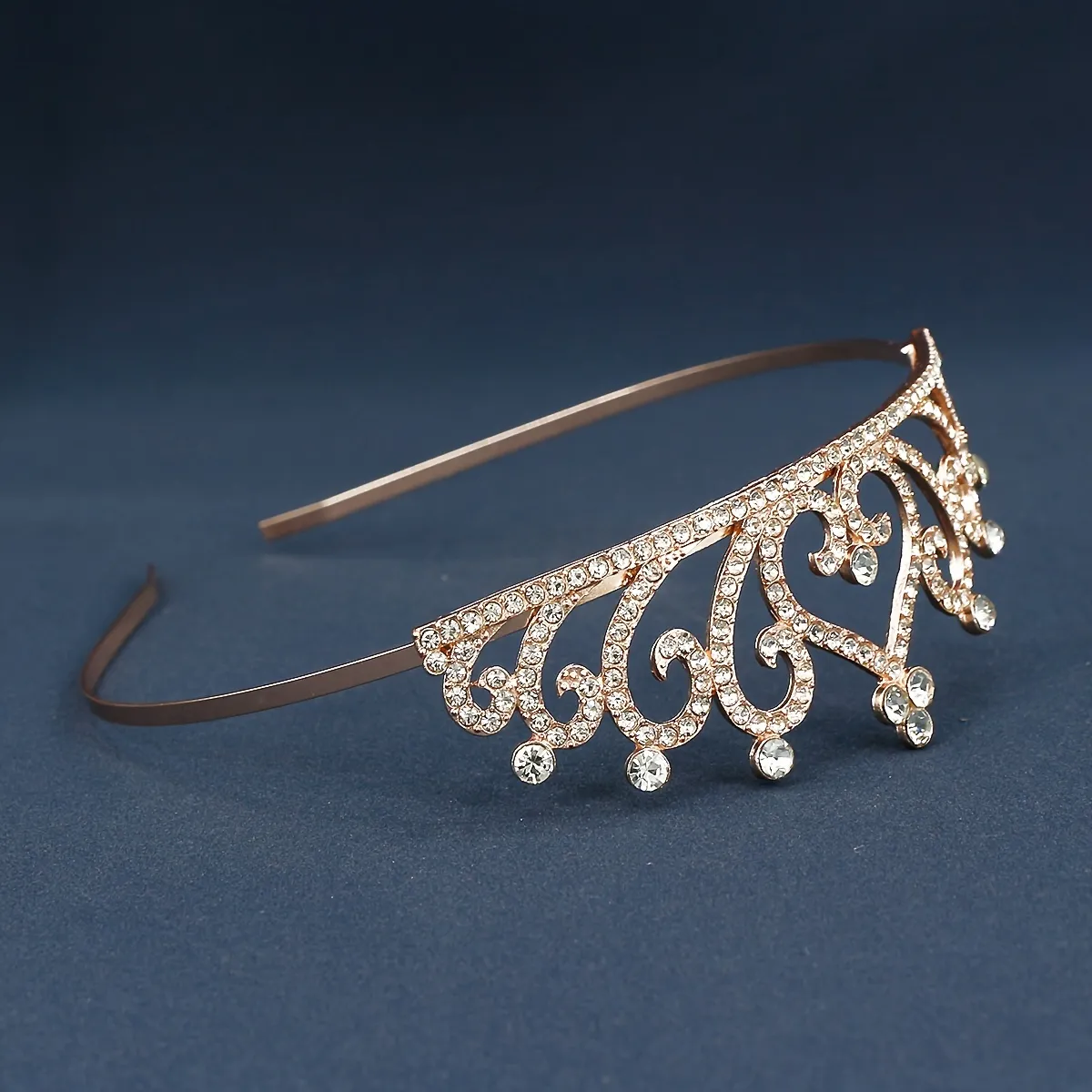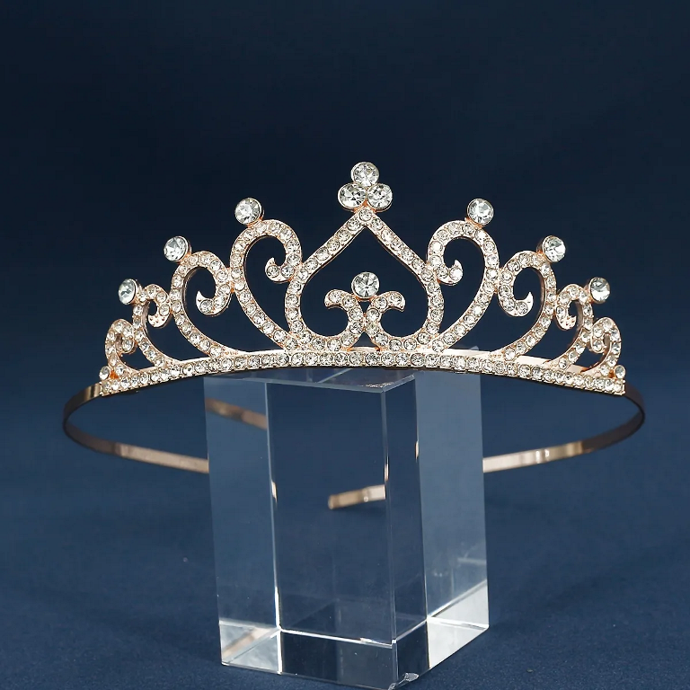Діадема (тіара) у вигляді корони RJ62041 колір рожеве золото, матеріал метал
