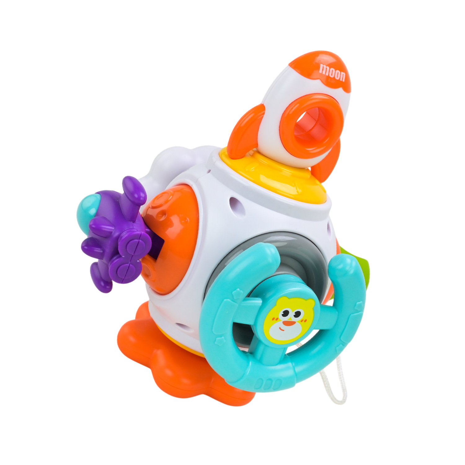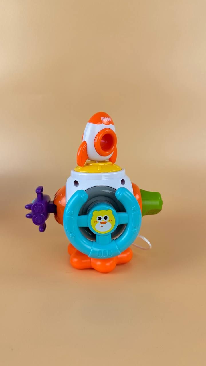 • Рухомі елементи: кермо, сонечко, які обертаються, важіль у вигляді літака утримують увагу дитини.