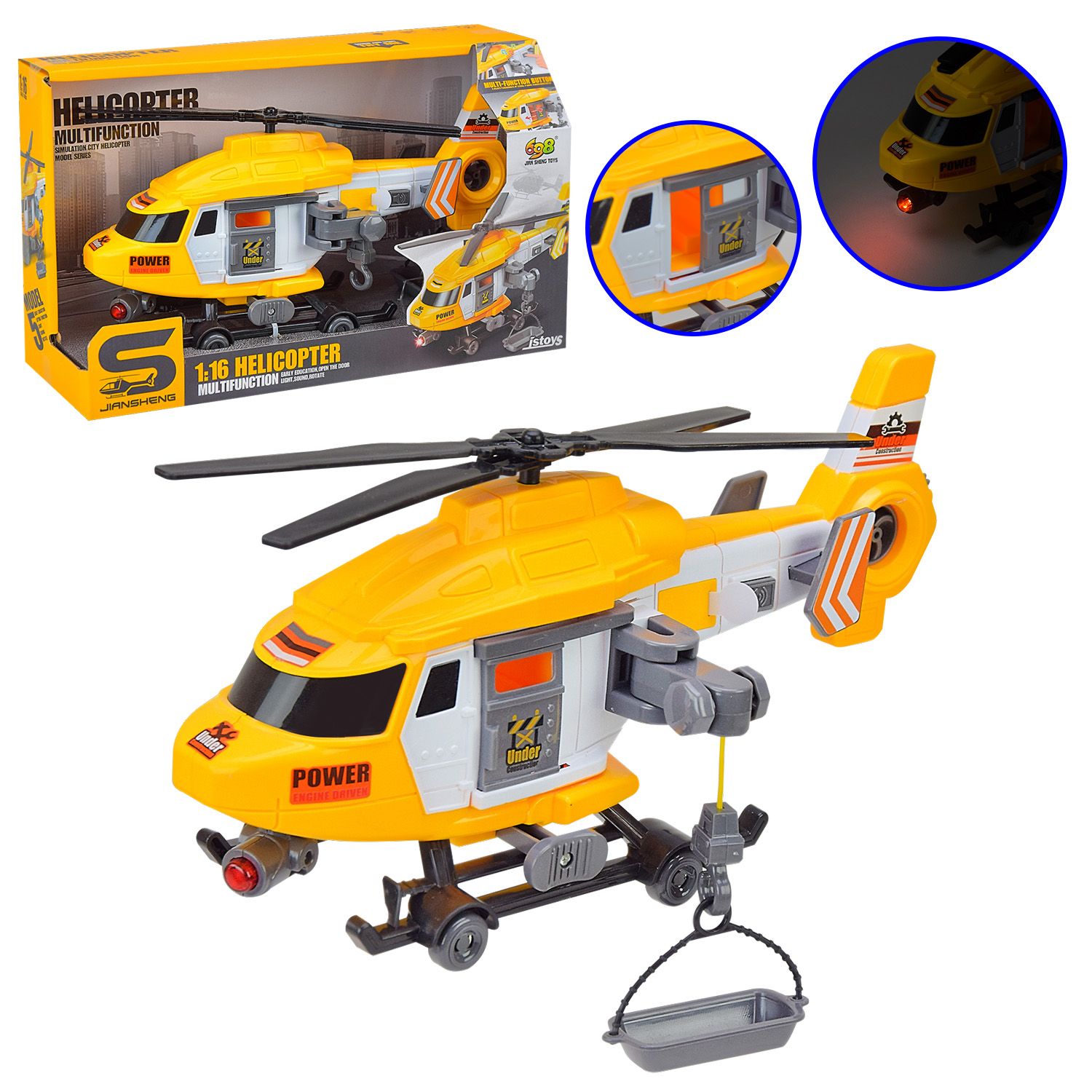 Дитяча іграшка гелікоптер вертоліт JS128 світловий та звуковий 1:16 коробка