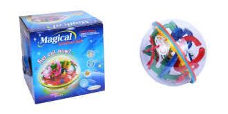 Магічна куля - є прозорою сферою, виготовленою з пластику, всередині якої розташований складний і заплутаний 3D лабіринт на 118 кроків, по якому повинна пройти маленька кулька. Діаметр кулі - 17 см Рекомендований вік - з 6 років Розмір упаковки 16.5X16.5X16.5