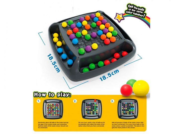 Кожен гравець пересуває кульки по полю таким чином, щоб досягти збігу двох кульок одного кольору по горизонталі або вертикалі, після чого, забирає ці кульки з поля.