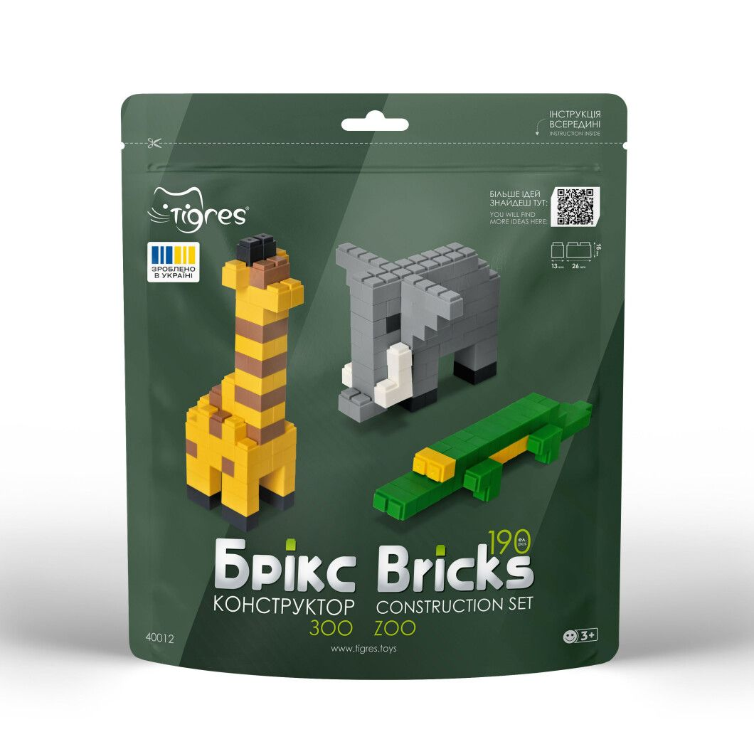 За допомогою детальної покрокової інструкції, дитина може скласти слона, жирафа тп крокодила, а також має нагоду втілити безліч креативних ідей, використовуючи той самий конструктор.